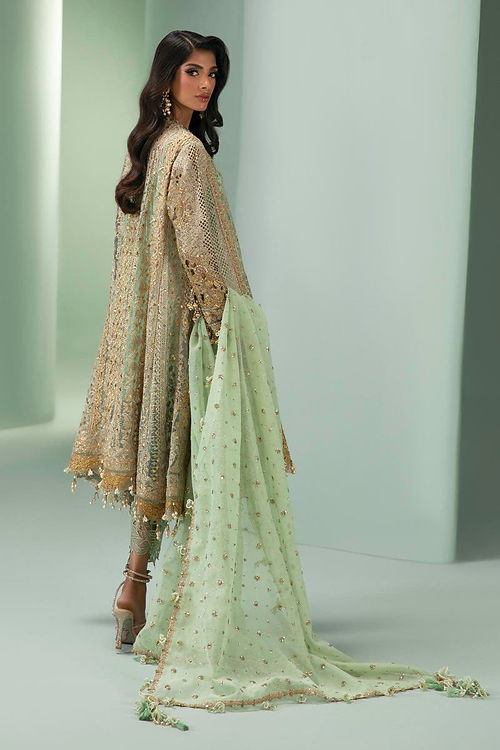 | Back Border Embroidered Mint Green Organza | 2 Meters |