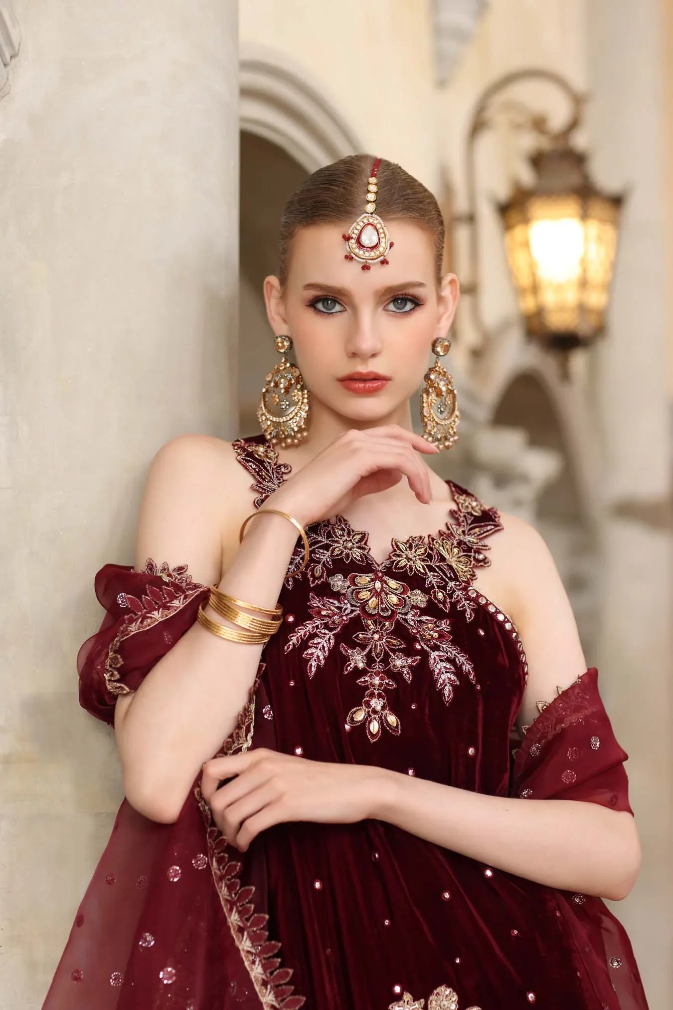 Hand embellished & Panni embroidered velvet front, center and side panels