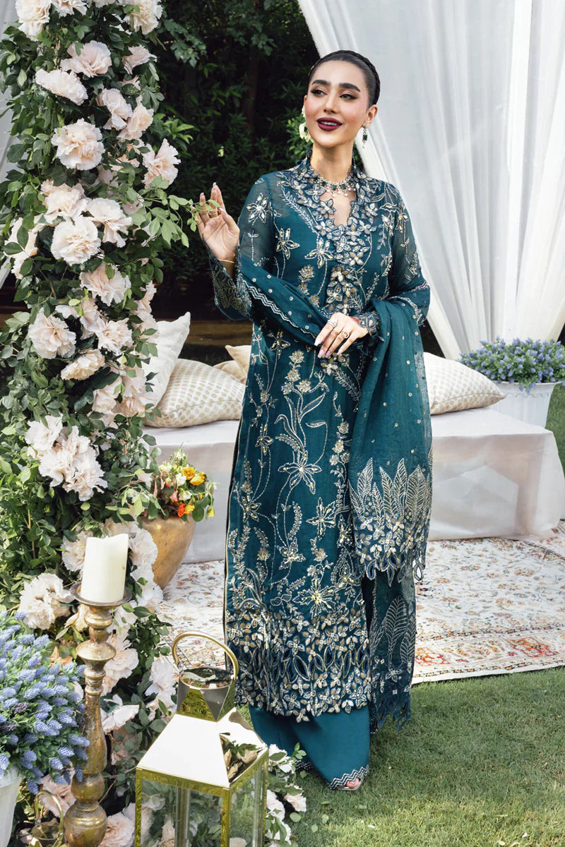 Dyed Organza Embroidered Neck 3d Flower 15 Pieces