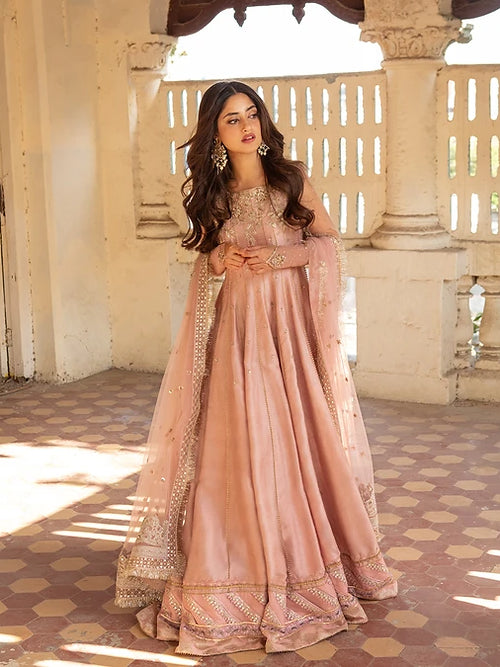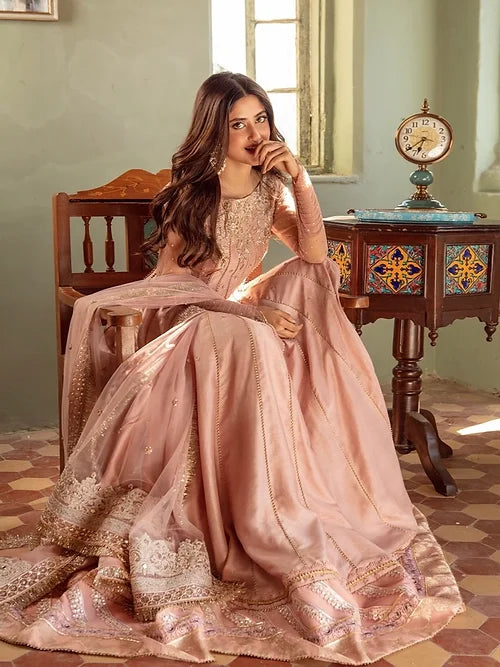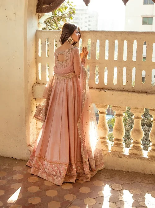- Hand embellished korean raw silk pishwas front and back (As shown)