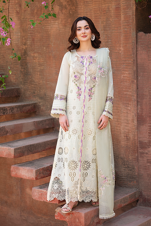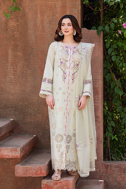 - Schiffli Embroidered Lawn Front with Cutwork Inlay