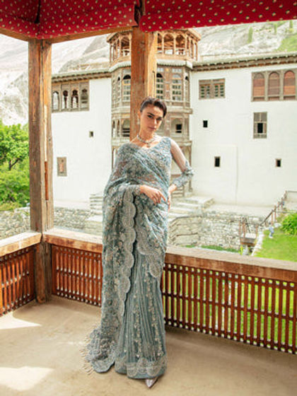 - Sequin embroided and hand embellished pallu one side boder on organza