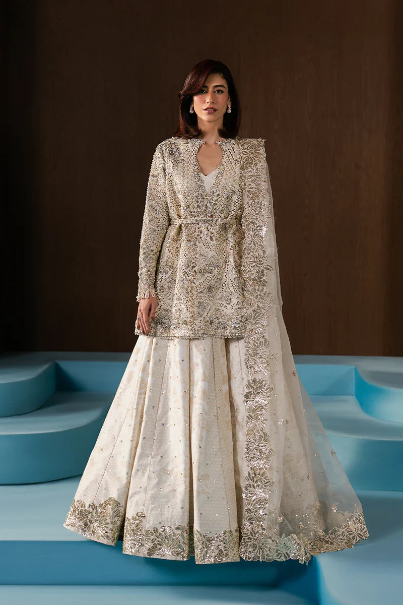 OFF WHITE RAW SILK 39" HAND EMBELLISHED EMBRIODERES FRONT RIGHT PANEL B 1 PC