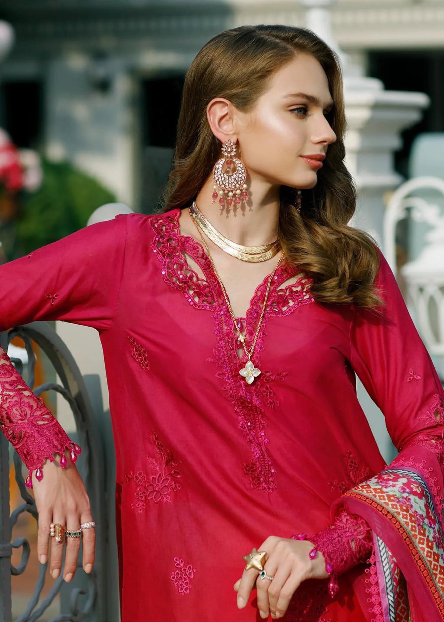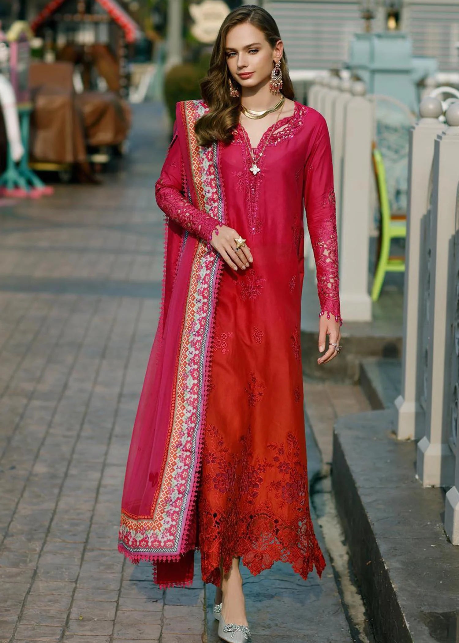 - schiffli Embroidered Chiffon Dupatta with Digital Printed 4 Sided Silk Border