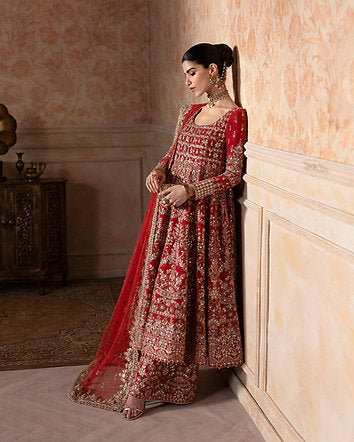 DESCRIPTION:A sublime homage to the classics, Savina stuns with its alluring hues and decadent ornamentation. Crafted on coral red, the shirt and culottes feature a flourishing web of tilla, gota and mirror work. This set also includes a diaphanous net dupatta that adds a delicate yet dazzling appeal to the ensemble, ensuring you shine the brightest at every celebration.