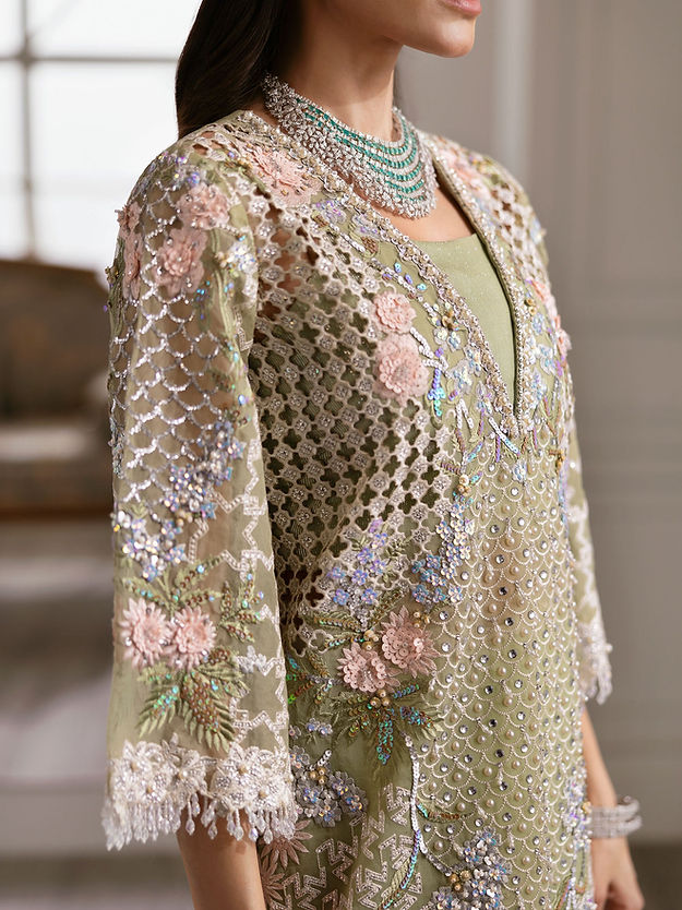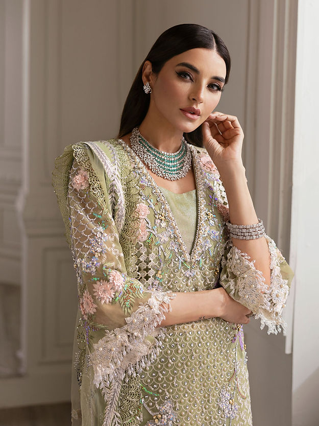 From time to time beading/ sequences may get displaced and this is not regarded as a fault but is due to the nature of the work. These garments should be worn with care.