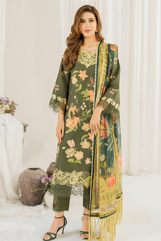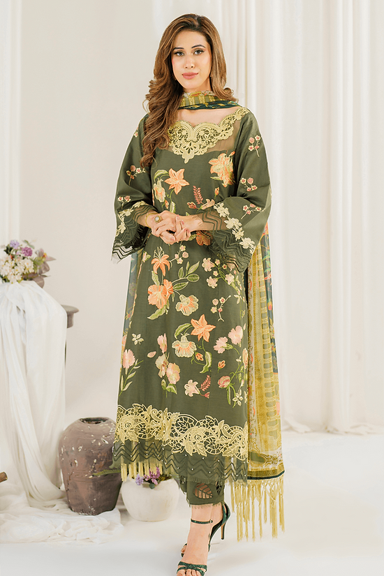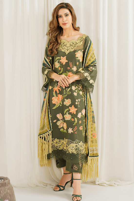 - Fully embroidered (boring work) left/right & center panel on dyed lawn.