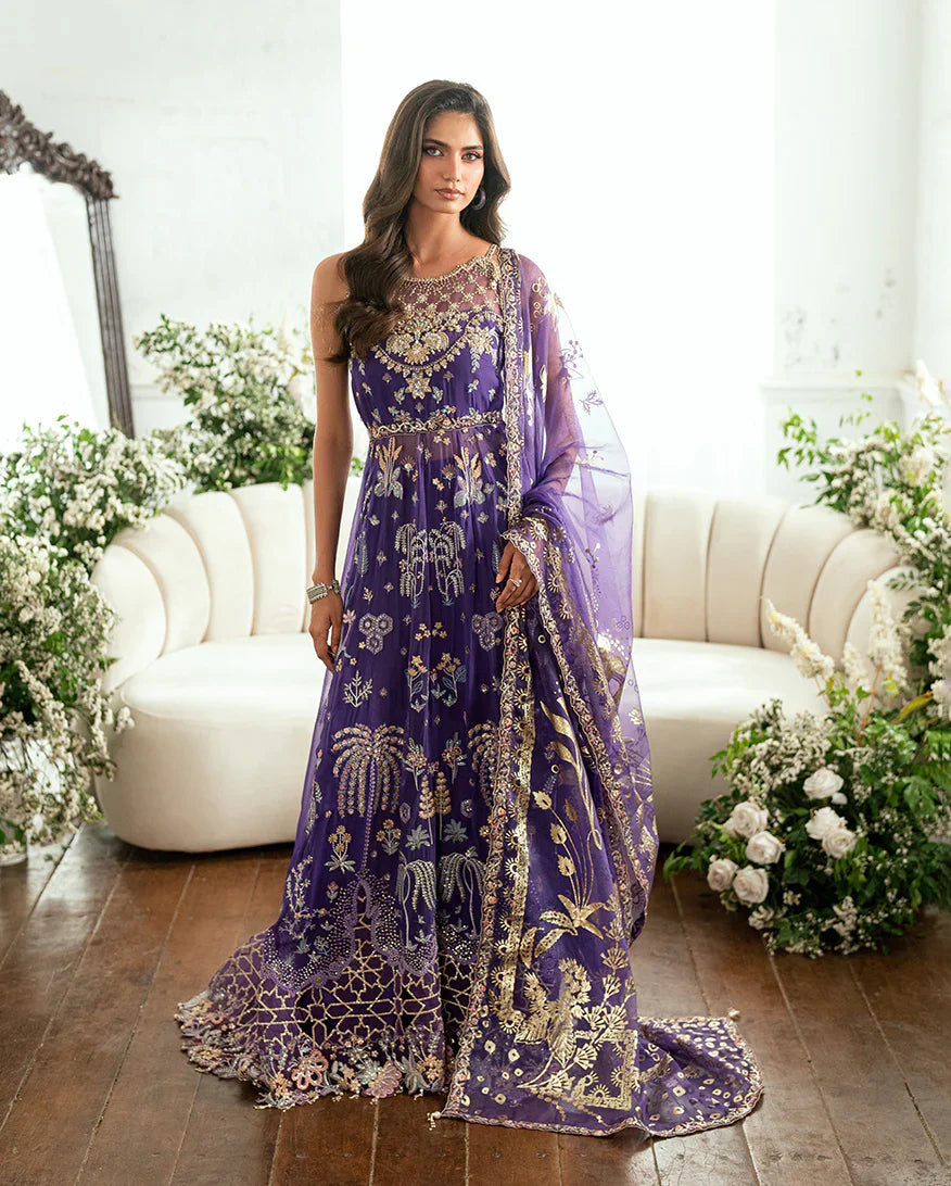 • Embroidered, sequinned pearl embellished front daman border (organza)