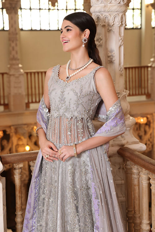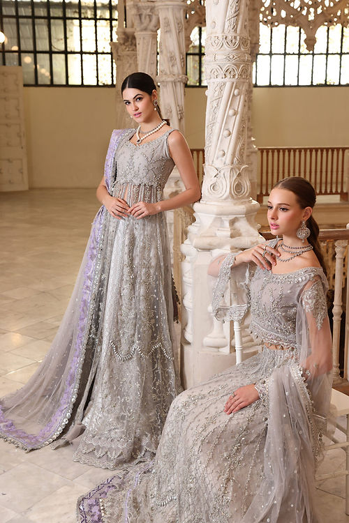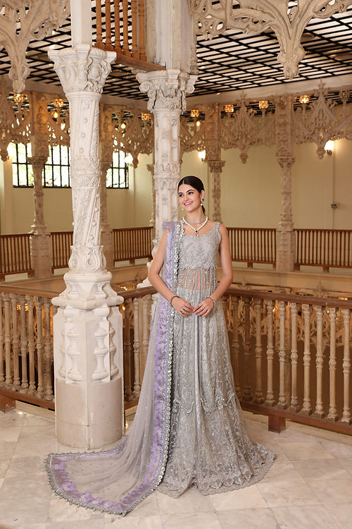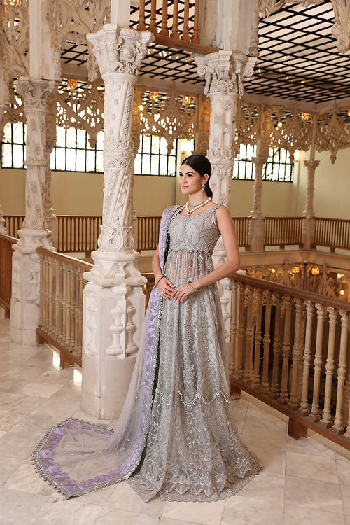 • Handworked Net Front Bodice Encrusted with Kora, Dabka, Pearls, Gotta, Rhinestones, and Sequin work