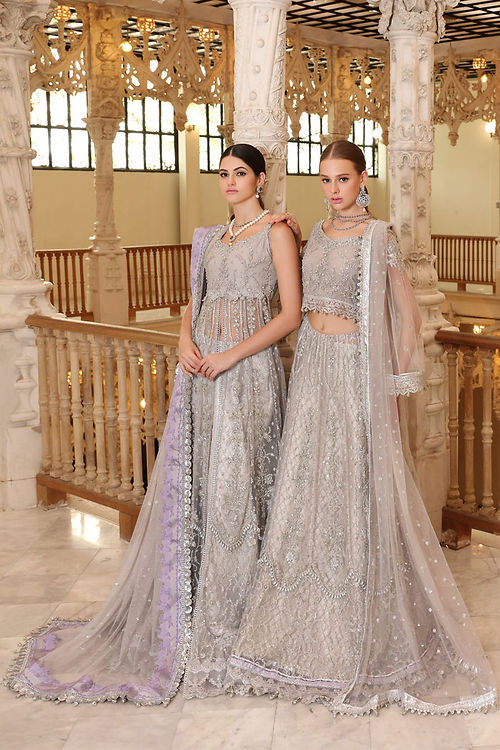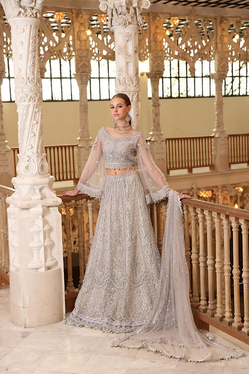 - Handworked Net Front Bodice Encrusted with Kora, Dabka, Pearls, Gotta, Rhinestones, and Sequin work