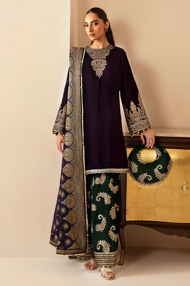 Embroidered Pure Velvet Bottom