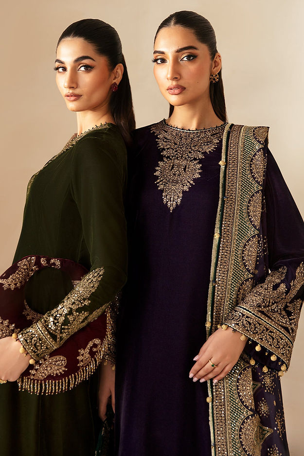 Embroidered Pure Velvet Front & Back Border