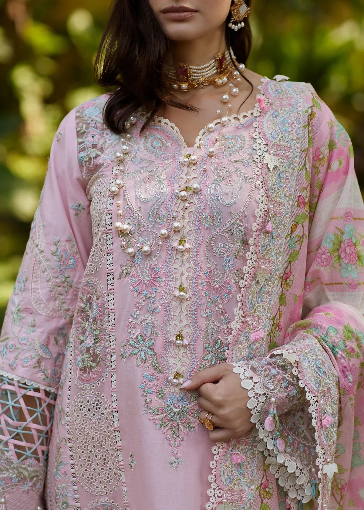 Embrace delicate elegance with this soft powder pink ensemble from our luxury lawn collection. The unstitched embroidered lawn shirt showcases intricate pastel threadwork and artisanal patterns, creating a silhouette of timeless sophistication. Paired with a cotton net dupatta, the look is elevated with subtle texture and a light, airy drape. Completed with matching dobby trousers, this outfit harmoniously blends modern refinement with exquisite craftsmanship, making it a perfect choice for graceful daytime and festive occasions.