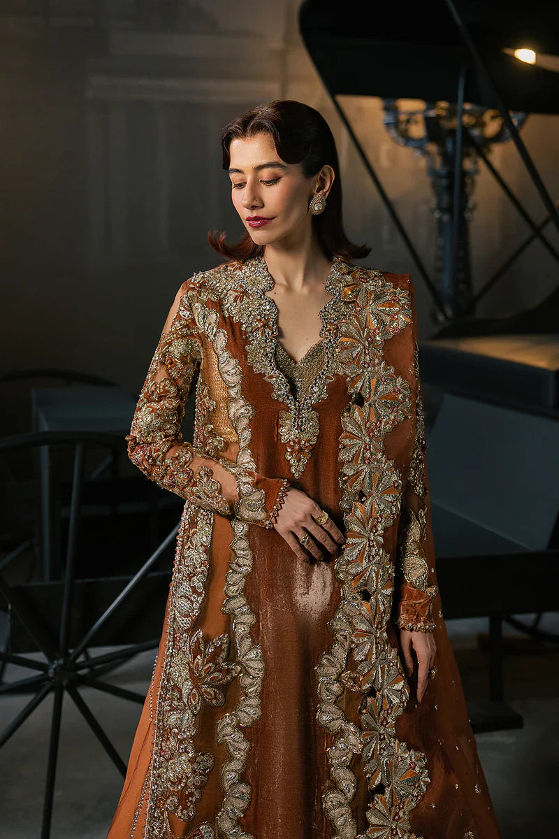 RUST ORGANZA 55" HAND EMBELLISHED EMBROIDERED FRONT RIGHT PANEL 1 PC